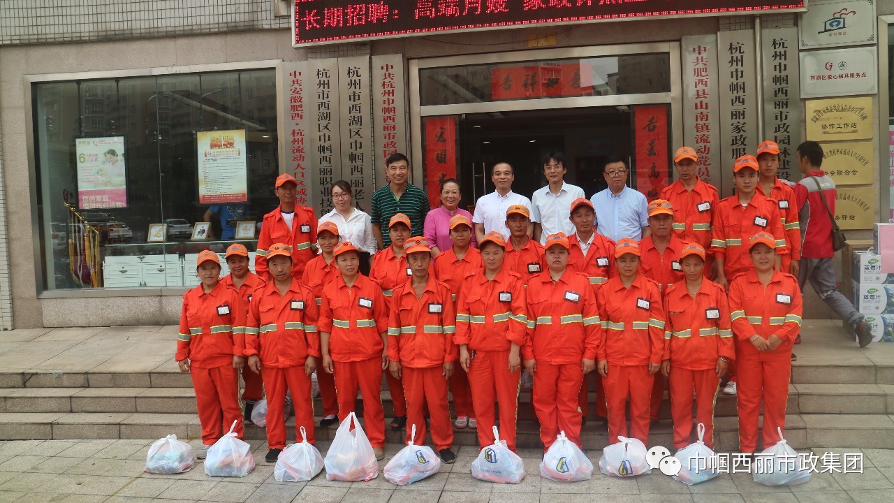 8月8日上午,在巾帼西丽集团总部,省建设建材工会领导亲切看望并慰问了奋战在炎热酷暑一线的“城市美容师”,为他们送来了防暑降温慰问品,感谢他们为创造优美、舒适、洁净的市容环境所付出的辛勤劳动和汗水。