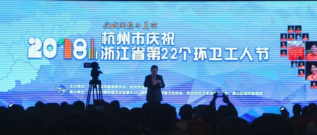 10月20日下午,浙江省第22个环卫工人节活动在杭州市钱江世纪城国际博览中心隆重召开,此次活动由杭州市城管委主办,杭州市市容环境卫生监管中心、杭州市城镇环境卫生协会、杭州市环卫保洁行业工会承办。