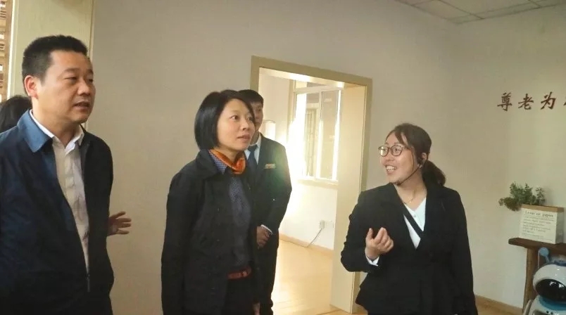 巾帼西丽集团总经理郭昱辰随后引导领导一行参观了遐龄荟老街养老院并详细介绍了各功能室。