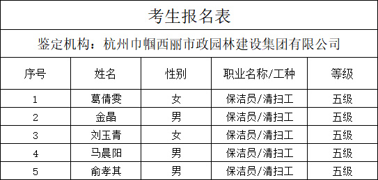 2021年11月职业技能认定考生公示
