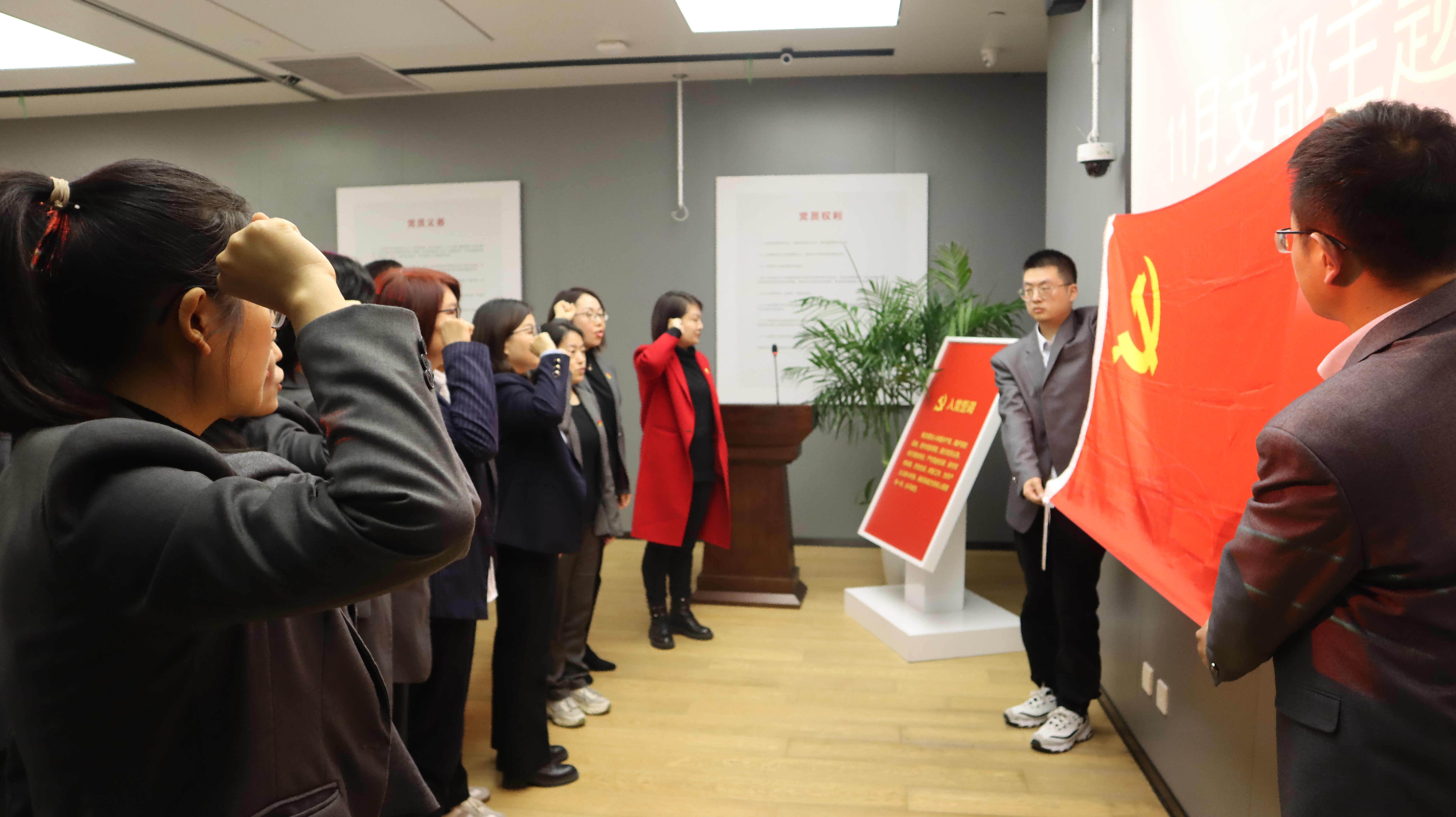 活动最后,杭州市党代表、巾帼西丽集团党委书记、总经理郭昱辰带领全体成员重温入党誓词。“我志愿加入中国共产党,拥护党的纲领,遵守党的章程,履行党员义务,………”,在鲜红的党旗前,全体党员同志举起右拳,面向党旗庄严宣誓,重温入党时对党和人民作出的庄严承诺。铿锵有力的誓言久久回响,宣示着坚定不移的政治信念和矢志奋斗的坚强决心。
