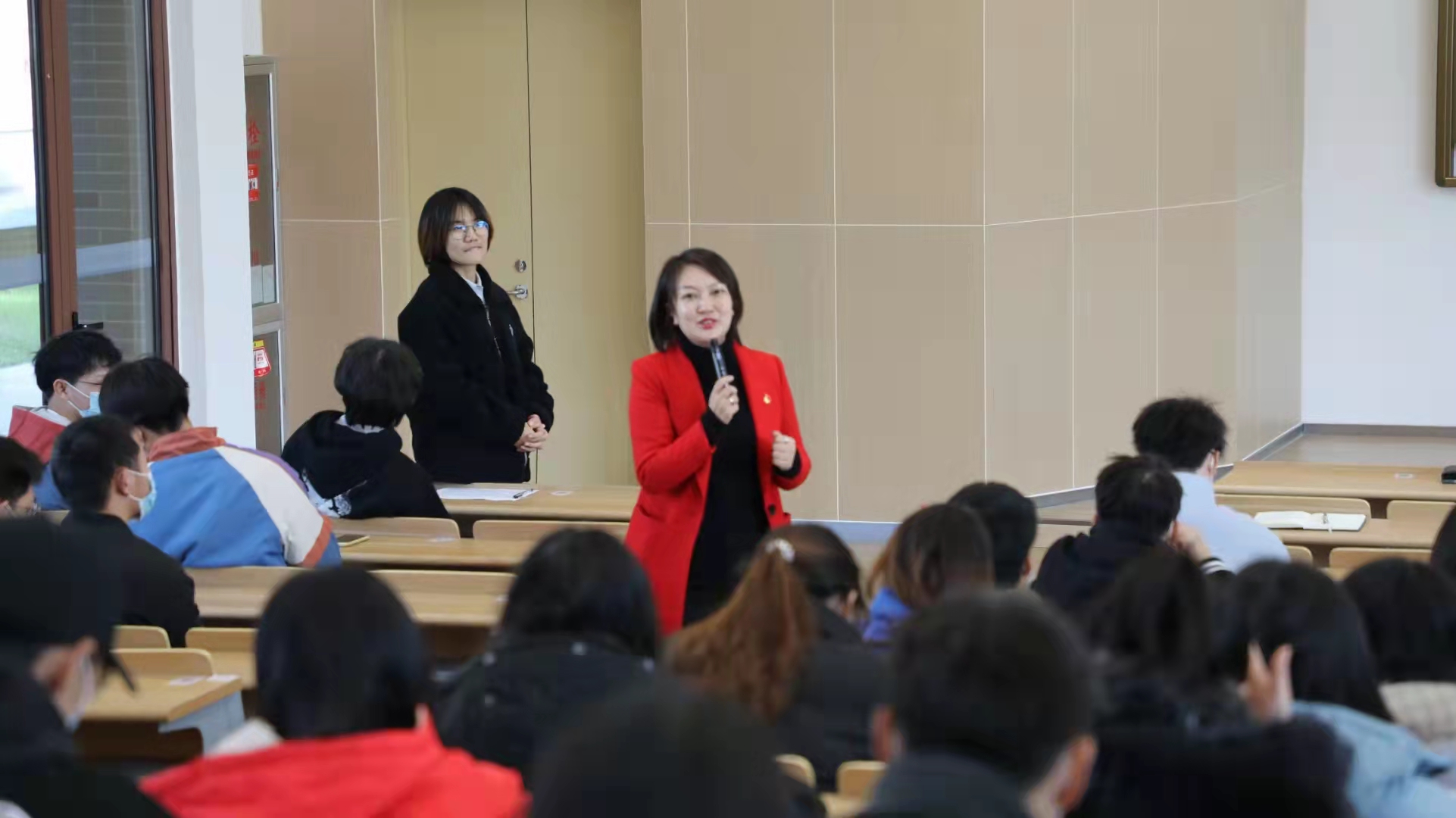 郭总从自身经历到企业发展,为管理与信息学院的学生作了振奋人心的宣讲报告。郭昱辰总经理表示:同学们生活在这个伟大奋进的新时代,要向着中国梦想奔跑,向着民族梦想奔跑。以青春之我创建青春之国家,努力在国家富强和民族复兴的道路上展现青年的力量。